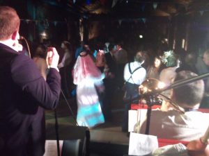 Lots of family and friends in attendance to witness the birthday boy himself joining the ranks of Mr Swing’s Dance Orchestra on 3rd trombone. Unfortunately Barnaby was rather too inebriated to remember how to play the damned thing and complained that the music was ‘all fuzzy’!